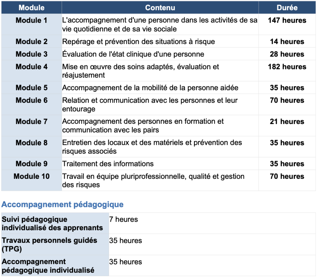 Modules à valider : 1, 1 Bis, 2, 3, 4, 7, 10 + accompagnement pédagogique