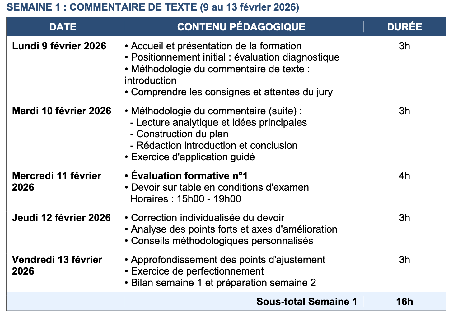 • Devoir sur table n°1 : Commentaire de texte (4h) – Semaine 1