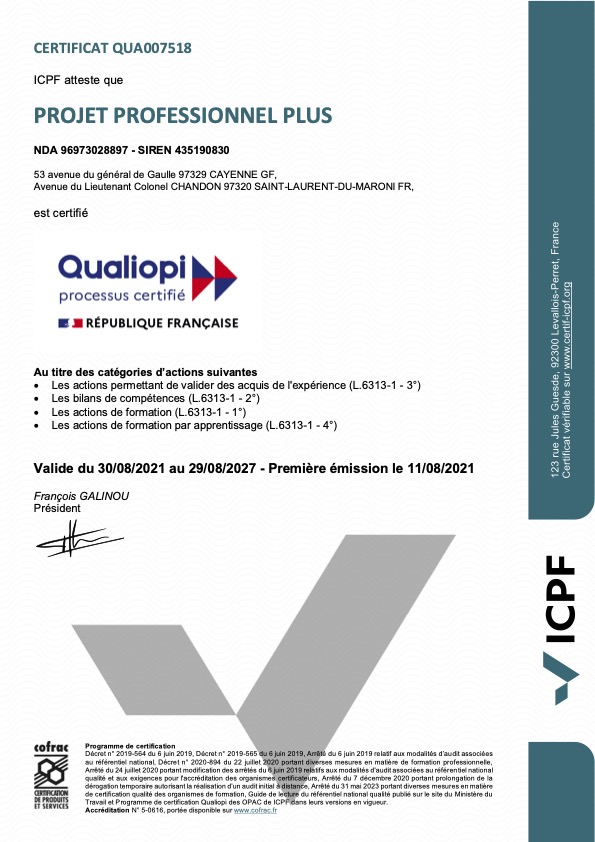 Projet Professionnel Plus a pour projet de créer un développeur de compétences locales en Guyane spécialisé dans un premier temps dans la formation paramédicale mais sur un long terme au développement de compétences en devenir dans le département Guyane. En effet, de nombreux secteurs d’activité restent en tension mais aussi de nombreux secteurs sont à développer.